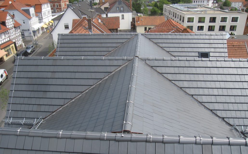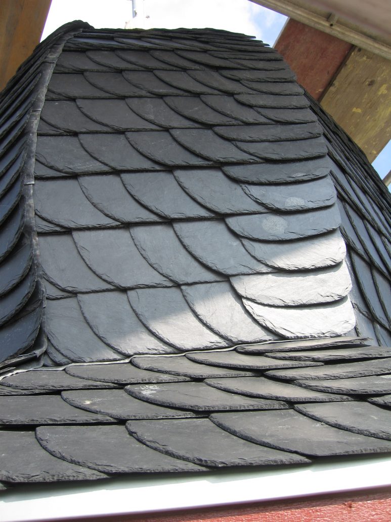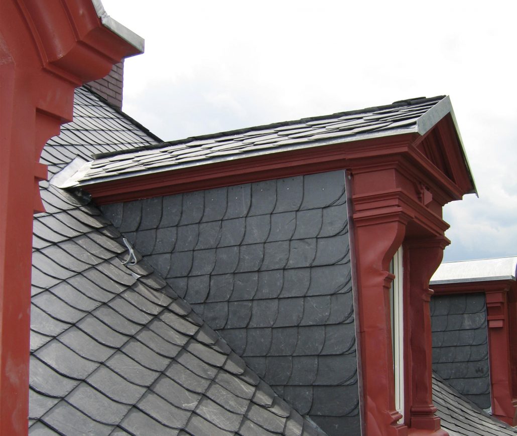 Vom Eigenheim über Kirchen-und Bürogebäude, wir bieten Ihnen Schiefer als Bogenschnitt, Universal, Raute oder als Fischschuppe an.